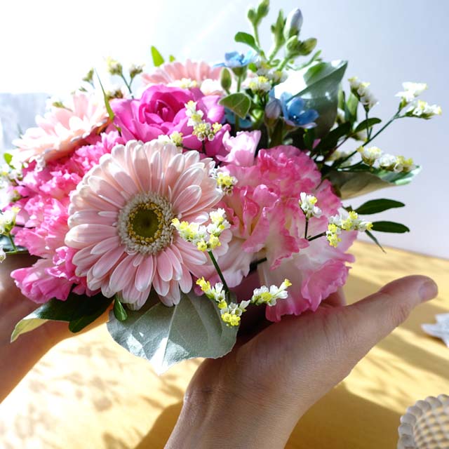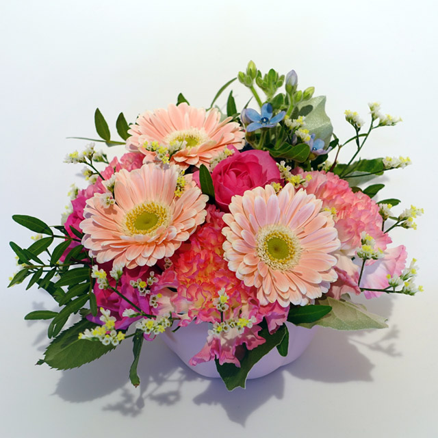 生花を使用したアレンジメントです。やさしいお色で、長く飾れるお花を厳選してお届けします。たくさんの「ありがとう」の気持ちをこめて・・・