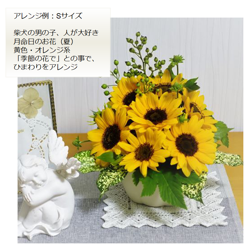 ペットのお供え花 こだわり生花アレンジメント セミオーダータイプ Sサイズ